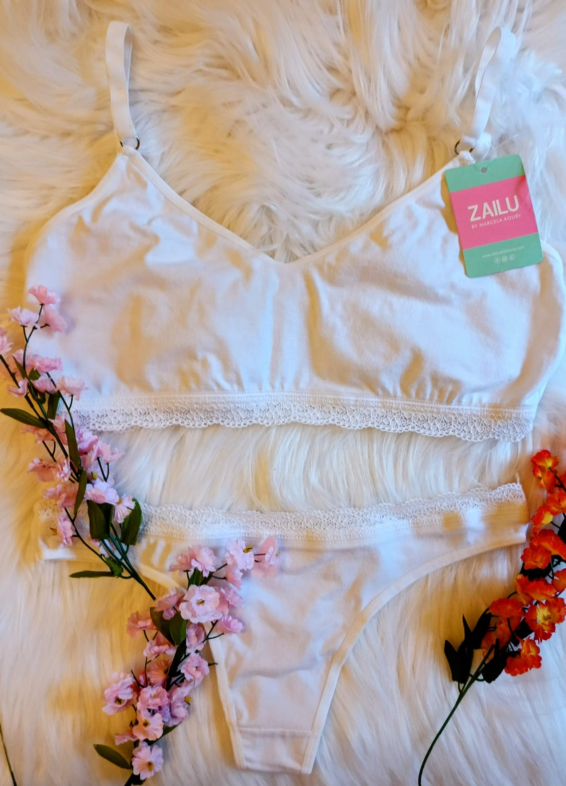 Conjunto de algodón y lycra, top y colaless con puntilla
